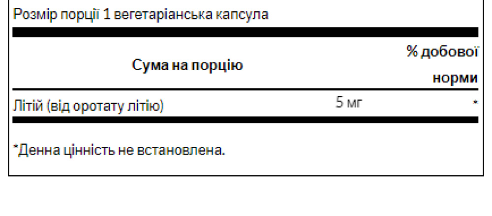 Літій є цінним мікроелементом. Солі літію використовували для різних цілей у галузі охорони здоров'я з 19 століття. Сьогодні оротат літію в низьких дозах доступний як харчова добавка. Ця форма літію в Swanson Ultra Lithium Orotate пов'язує іони літію з ротовою кислотою і трохи відрізняється від інших форм, таких як аспартат літію. Оротат літію слід використовувати обережно під наглядом кваліфікованого медичного працівника. Ознайомтеся з відгуками оротату літію нижче, щоб дізнатися, що думають інші покупці.