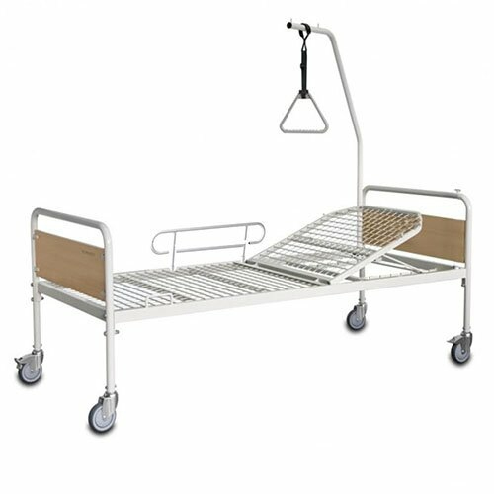 Медична ліжко Імпульс МФУ-1 оснащене механічним приводом підйому і опускання 2 секцій: головної і ножної.