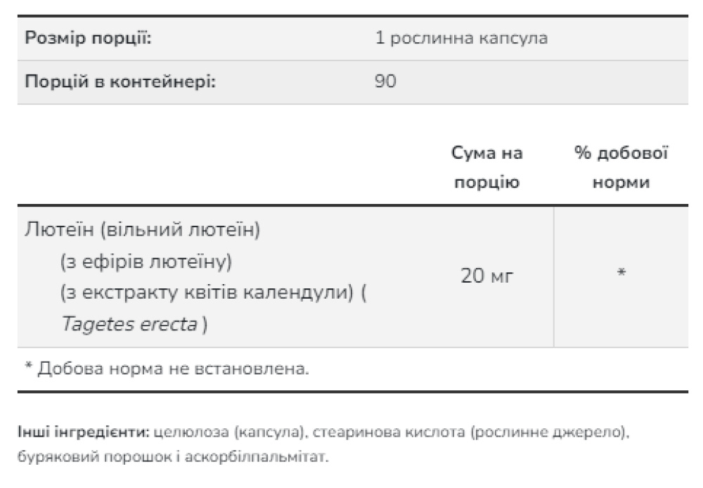 20 мг вільного лютеїну з ефірів лютеїну