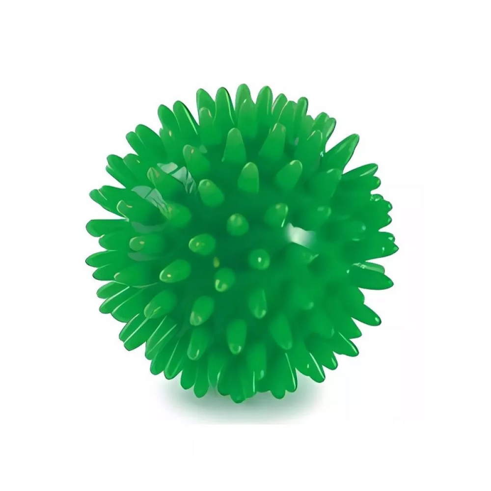 Масажний м’ячик активізує кровопостачання на ділянці впливу, покращує чутливість і стимулює пропріорецепцію. Зміцнює м’язи. Покращує керованість кінцівками. Зменшує/знімає біль і спазм.
