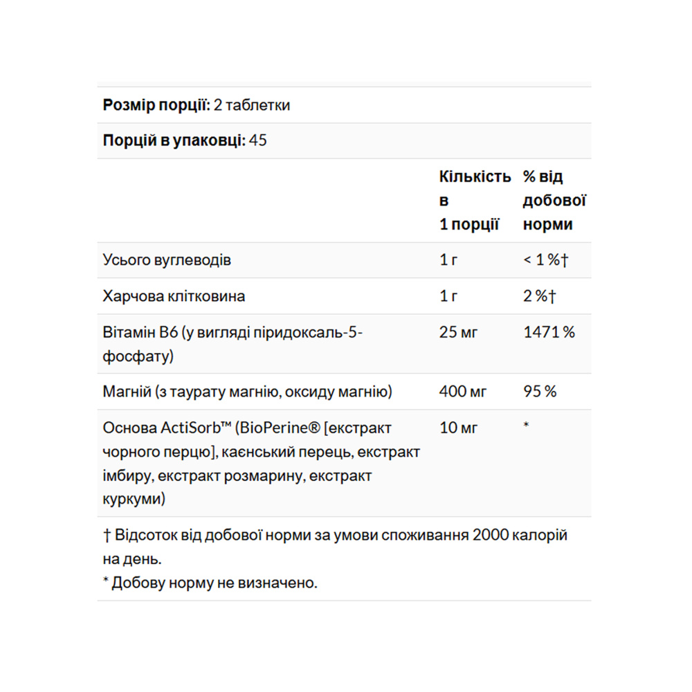 Таурат магнію+ від KAL® містить мікроелемент магній і амінокислоту таурин у вільній формі. Таурат магнію надає поживну підтримку, необхідну для здорового функціонування нервової системи та м’язів, а також для регуляції нормального потоку іонів через клітинні мембрани. Це допомагає забезпечити стабільність мембран і захистити від оксидативного стресу серце, кровоносні судини й тканини. Піридоксаль-5-фосфат, коферментна форма вітаміну B6, забезпечує біодоступну живильну підтримку, необхідну для синтезу еритроцитів і роботи нервової тканини. Дослідження показали синергічний взаємозв’язок між магнієм і вітаміном B6.