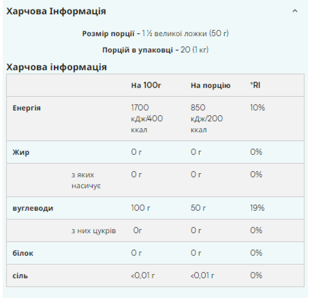 Мальтодекстрин є полісахарид, отриманий з крохмалю шляхом часткового гідролізу, і має DE (еквівалент декстрози) 18. Це білий порошок без солодощі або запаху. Переваги мальтодекстрину Хоча мальтодекстрин є складним вуглеводом, його глікемічний індекс (ГІ) досить високий, він трохи нижчий від простих вуглеводів, таких як декстроза. Мальтодекстрин підходить для тих, хто займається тривалими фізичними тренуваннями та хоче збільшити споживання вуглеводів. ПЕРЕВАГИ - Вуглеводи з високим ГІ - Відмінне джерело енергії - швидко поповнює запаси глікогену ВИКОРИСТАННЯ Додайте бажану кількість води або фруктового соку в наш шейкер (чим менше рідини, тим густішим буде коктейль). Потім додайте 50 г, струсіть і випийте. Використовуйте до, під час та після інтенсивних вправ для досягнення найкращих результатів. СКЛАДОВІ Виготовлено на підприємстві, яке також обробляє молоко, сою, яйця, глютен та продукти з них. Без смаку: мальтодекстрин (100%).
