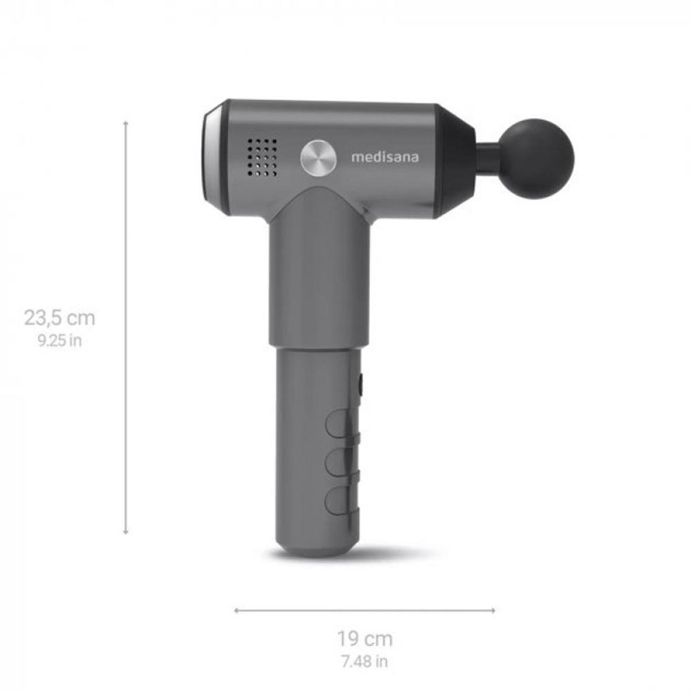 Масажер MG 500 Massage Gun Pro від Medisana забезпечує потужний глибокий масаж тканин для сприяння їх регенерації. Самомасаж допомагає при втомі та болю в м’язах, стимулює кровообіг і скорочує час відновлення м’язів.
