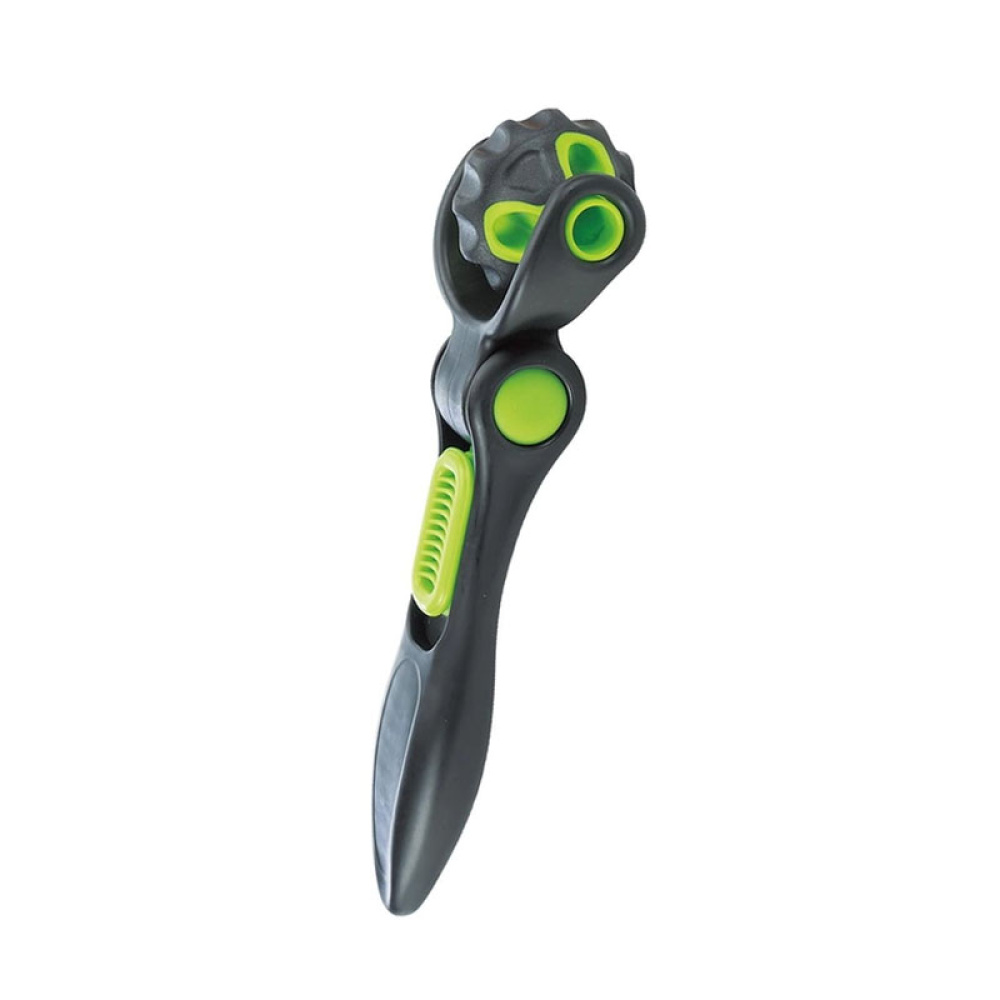 Масажер виконано у вигляді ручки з масажним роликом, що сприяє ефективному масажу.