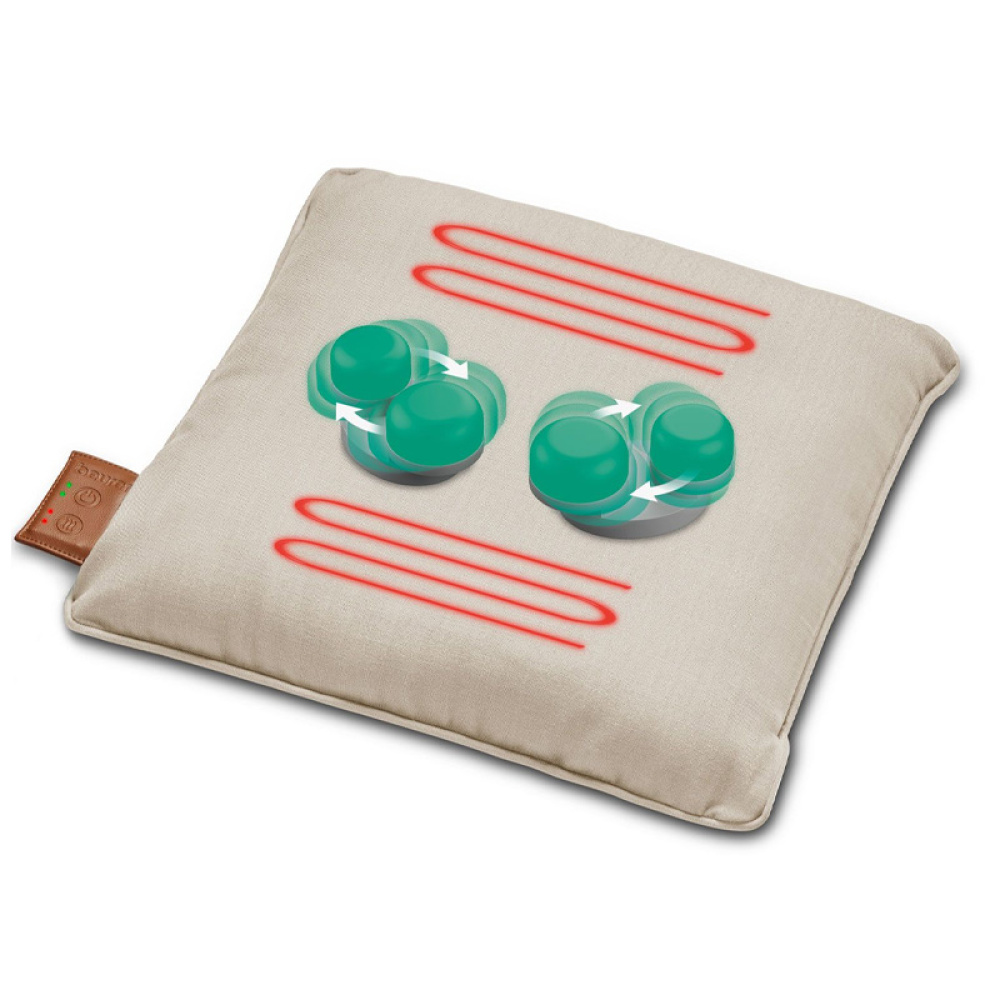 Бездротова шиацу‑подушка з акумулятором для розслаблювального масажу спини, шиї, рук і ніг. Бежевий текстиль легко вписується в інтер’єр, а м’який чохол знімний і придатний до прання.