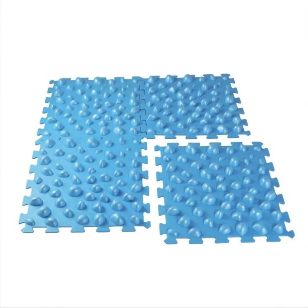 Масажний килимок тренує суглобовий апарат стопи, активізує кровопостачання і активізує пропріорецепцію. Зміцнює м’язи. Покращує координацію рухів. Розвиває силу та витривалість м’язів нижніх кінцівок.