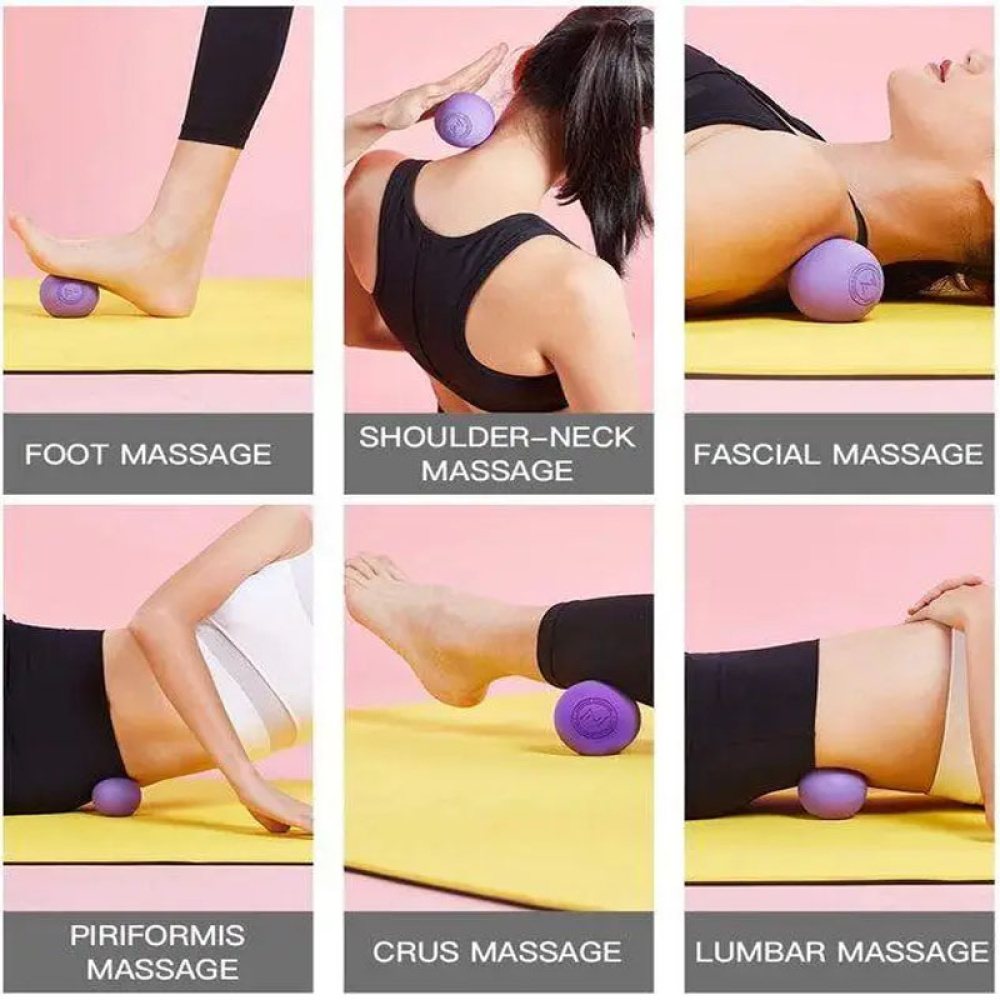Масажний м'яч призначений для точкового впливу на м'язи та фасції. Такий масаж допомагає зменшити напругу та біль, а також покращити кровообіг.