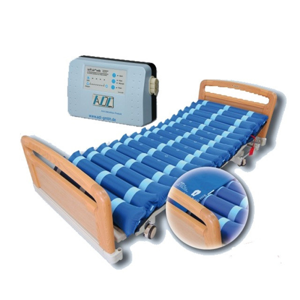 Матрац секційний ADS Ukraine Soft air wds з компресором - це високоефективна і високоякісна протипролежнева система, яка забезпечує підвищений комфорт пацієнтам, вимушеним тривалий час перебувати в лежачому положенні. Рекомендується використовувати даний тип матраца для надання високоякісної профілактики від появи пролежнів, а також в якості спеціалізованого терапевтичного догляду за пацієнтами, які схильні до утворення пролежнів 3-ої категорії. Завдяки тому, що в процесі застосування матраца забезпечується правильний розподіл навантаження на тіло, а також безперервний масажний ефект, існує можливість нормалізувати кровообіг і значно поліпшити якість сну. Матрац є сукупністю з 17 окремих секцій, виготовлених з нейлону, а також спеціального чохла з поліуретану. Завдяки тому, що поверхня секцій оснащена спеціальною лазерною перфорацією, забезпечується високий рівень циркуляції повітря, а також стабільна підтримка термічного балансу. Кожна окрема осередок була піддана випробуванню високим рівнем тиску до 2,5 бару. Саме завдяки секційній системі, матрац здатний повторити всі контури тіла пацієнта і надати оптимально низький тиск. Матрац оснащений спеціальною системою з трьох камер (АВС система), яка оснащена циклом змінного тиску і кожен цикл триває від 5 до 20 хвилин. Окремо варто відзначити, що дана протипролежнева система прекрасно підходить навіть тим пацієнтам, які страждають від больового синдрому і судом, даний ефект досягається завдяки наявності функції статичного тиску. Переключити матрац з функції поперемінного тиску на статичну досить просто, для цього лише потрібно натиснути на одну кнопку. Для додаткової зручності у використанні, система оснащена функцією прискореного здуття матраца - серцево-легенева реанімація (CPR). Матрац оснащений спеціальним чохлом. Основними відмінними властивостями чохла, є те, що він здатний відштовхувати воду і піт, а також абсолютно не дратувати шкіру, завдяки гіпоалергенному покриттю. Таким чином, чохол стане незамінним помічником при наявності проблем нетримання - він захистить не тільки матрац зокрема, а й ліжко в цілому. Чохол не тільки можна прати при температурі 95 ° С, але і піддавати сушці при температурі 50 ° С. Кріплення матраца до ліжка забезпечується за допомогою спеціальних ременів для кріплення. У комплект з матрацом входить компресор, який забезпечує необхідний рівень накачування матраца. Компресор відрізняється дуже низьким шумовим рівнем, а також має вбудовану систему проти вібрації (AVS) та режимом енергозбереження Start-Stop, який забезпечений повітряним фільтром. Для підключення та застосування компресора не потрібно додаткових навичок, а для більшої зручності в комплект входить ремонтний набір. Систему рекомендується використовувати пацієнтами, вага яких знаходиться в межах від 30 до 140 кг. Матрац відрізняється оптимальними розмірами, які складають 200 х 86,5 х 13,5 см. Також складові протипролежневого комплекту мають досить компактну вагу: матрац - 6,5 кг, компресор - 1,5 кг, чохол - 0,9 кг. Виробник надає гарантію на виріб протягом 2 років. Окремо варто відзначити, що комплект пройшов всі клінічні випробування організацією IQSH (організація по забезпеченню якості допоміжних кошти) в місті Штаде (Німеччина).