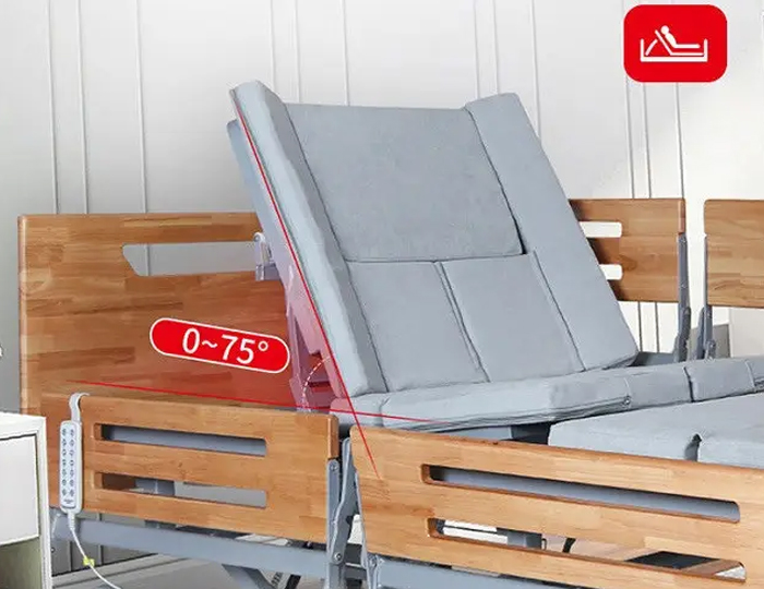 Положення спинки регулюється в діапазоні 0-75⁰. Це дозволяє ліжку прийняти положення крісла, використовуване при ефективній терапії різних кардіологічних і не тільки захворювань. Крім того, забезпечує максимально зручне положення під час неспання, прийому їжі, здійснення туалетних процедур. Дозволяє максимально зручно встати з ліжка.