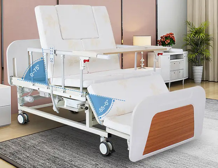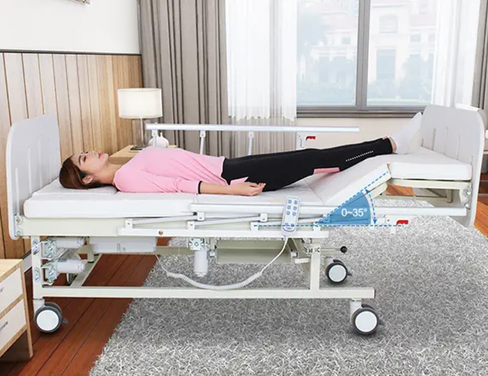 Регулювання нахилу секції ніг. Сприяє поліпшенню кровообігу ніг, запобігає варикозному розширенню вен і легко дозволяє проводити щоденний догляд.