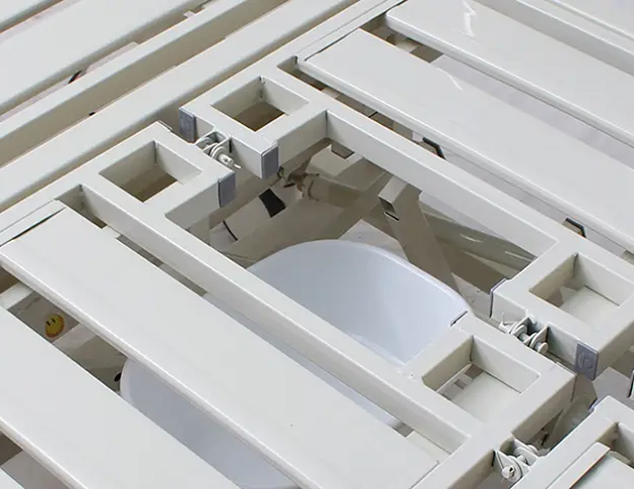 Туалетне оснащення. Являє собою прямокутне судно (215 * 250 мм) на висувній платформі, пристрій управляється електроприводом через пульт, надійно закривається кришкою і м'яким сегментом матраца.