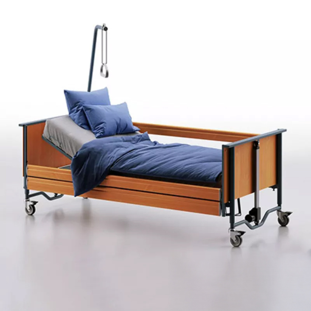 Виняткова якість, бездоганна зручність для пацієнта й доглядальників, продуманий і вишуканий дизайн — усе це втілено в медичному ліжку Bock domiflex® 3. Спальне місце розділене на 4 секції, 3 з яких рухомі, для зміни та підтримання зручного положення пацієнта. Регульована висота ліжка робить зручним проведення потрібних процедур для медичного персоналу. Підйомні поручні запобігають падінню з ліжка. Для легкого переміщення в межах кімнати ліжко обладнане з коліщатами. Для надійного утримання на місці та запобігання самовільному переміщенню кожне колесо має індивідуальне гальмо. Гумове покриття коліс запобігає псуванню підлоги.