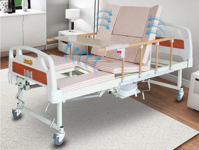 Медичне функціональне ліжко з туалетним оснащенням. Ліжко призначене для догляду за лежачими хворими в медичних закладах і в домашніх умовах, а так само для реабілітації.