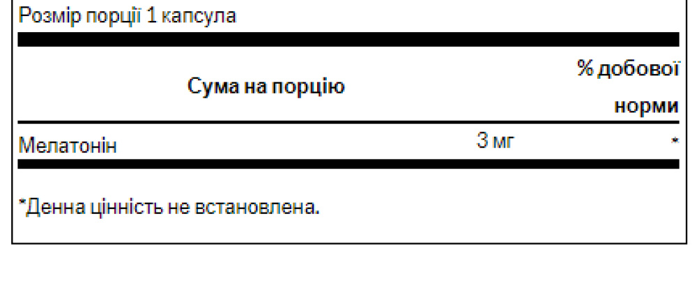 Контролюйте свій цикл сну/неспання за допомогою мелатоніну Swanson! Цей корисний гормон відновлює нормальний режим сну, одночасно надаючи організму чудову антиоксидантну підтримку. Кожна капсула містить 3 мг мелатоніну.