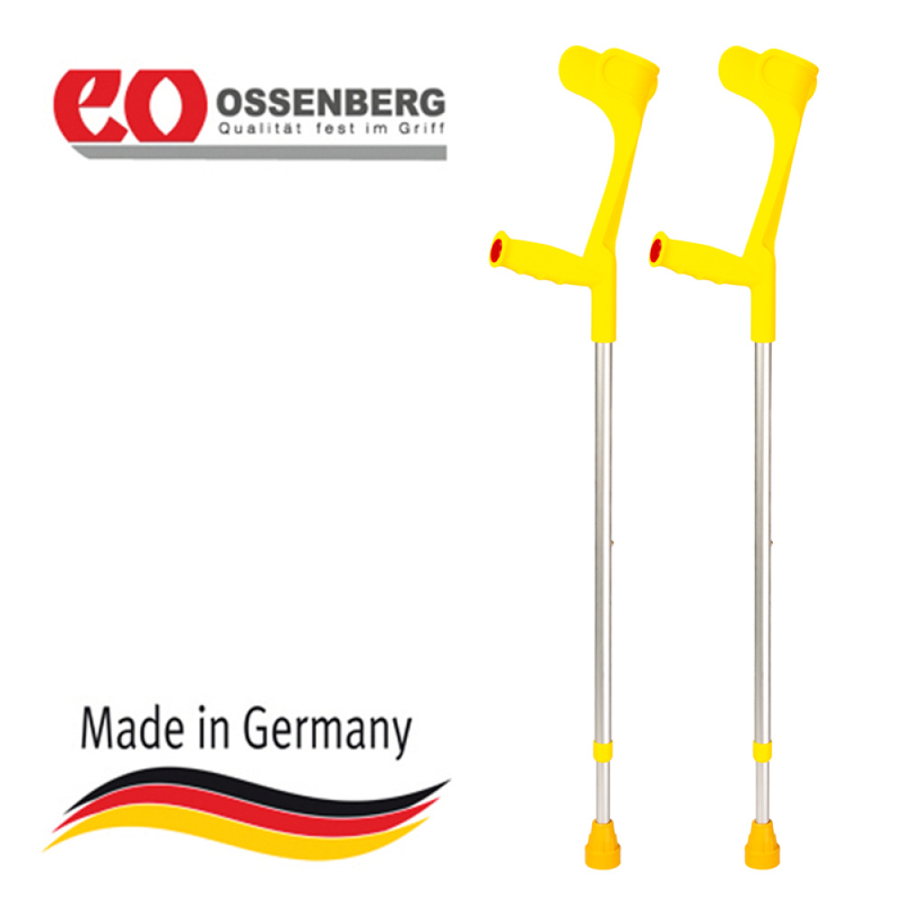 Полегшені милиці з регулюванням по висоті. Милиці Ossenberg Klassiker виготовлені з високоякісного алюмінію, який пройшов обробку анодуванням, що в рази збільшує термін придатності і міцність матеріалу. Ергономічна рукоятка виготовлена із високоякісного пластику. Система фіксації за допомогою кнопкового замка одним натисканням легко дозволяє відрегулювати потрібну висоту. Милиці також оснащені гумовими наконечниками з металевою вставкою, що значно продовжує термін використання. У рукоятки вбудовані світловідбивачі з обох боків для безпечного пересування у темний час.