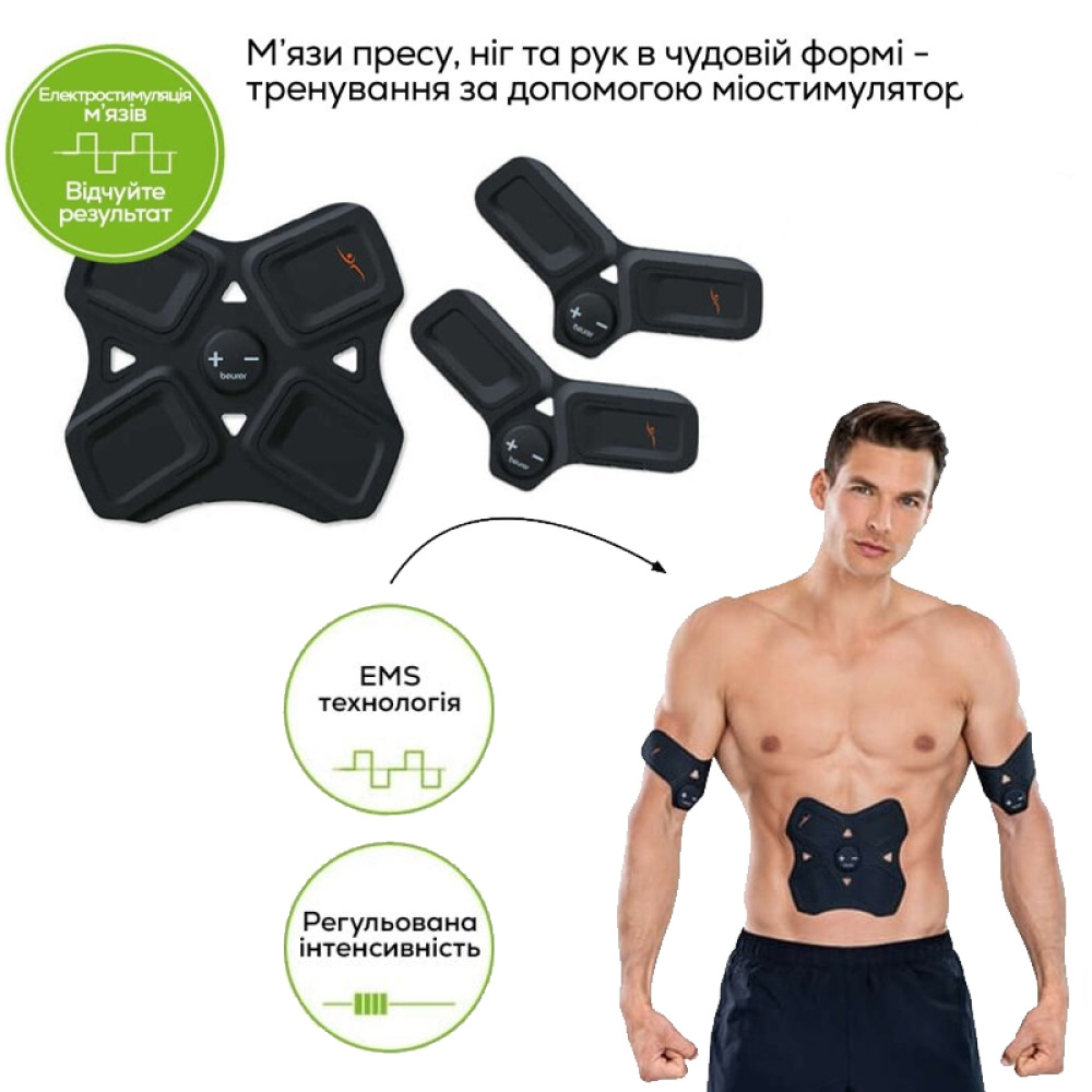Нарешті Ви у відмінній формі! Підкріпить тренування Вашої мускулатури міостимулятором EM 22. За допомогою технології EMS Ви можете цілеспрямовано тренувати свій живіт, руки і ноги.