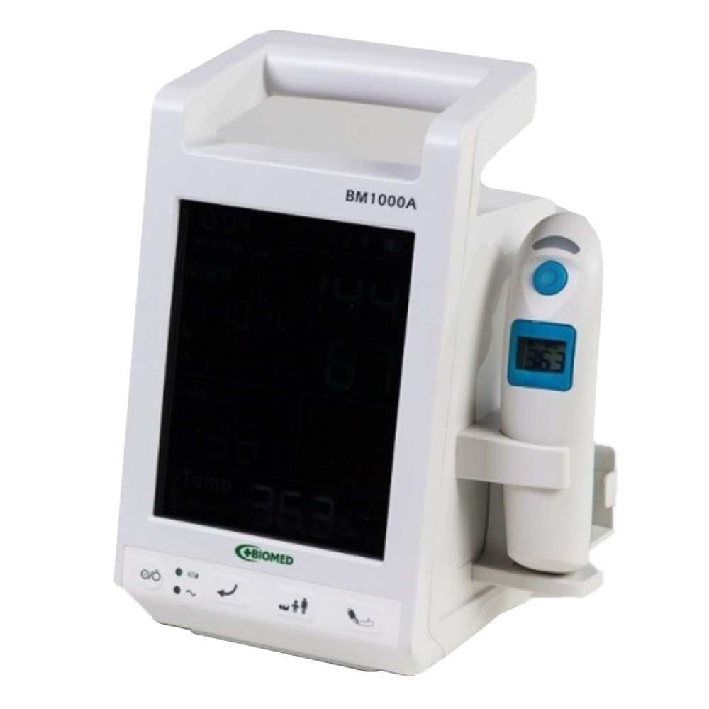 ВМ1000А - Портативний монітор контролю життєво важливих показників таких, як насичення артеріальної крові киснем (SpO2), частота пульсу (ЧП), неінвазивний артеріальний тиск (НІАТ) та температура тіла у дорослих, дітей та новонароджених в умовах стаціонару та медичних оглядів.