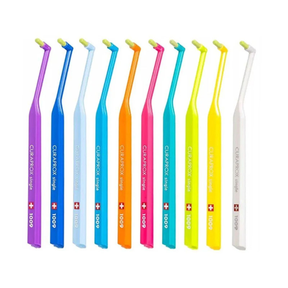 Монопучкова щітка CS 1009 Single ідеально підходить для догляду за брекет-системами, окремо розташованими зубами та зубними протезами. Має запатентовані щітинки Curen®, 9 мм в довжину та діаметром 0,12 мм