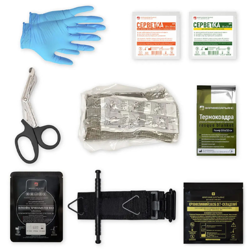 Комплект можна використовувати окремо або інтегрувати в основну аптечку. Він легко розміщується в тактичних аптечках, медичних рюкзаках чи індивідуальному спорядженні.