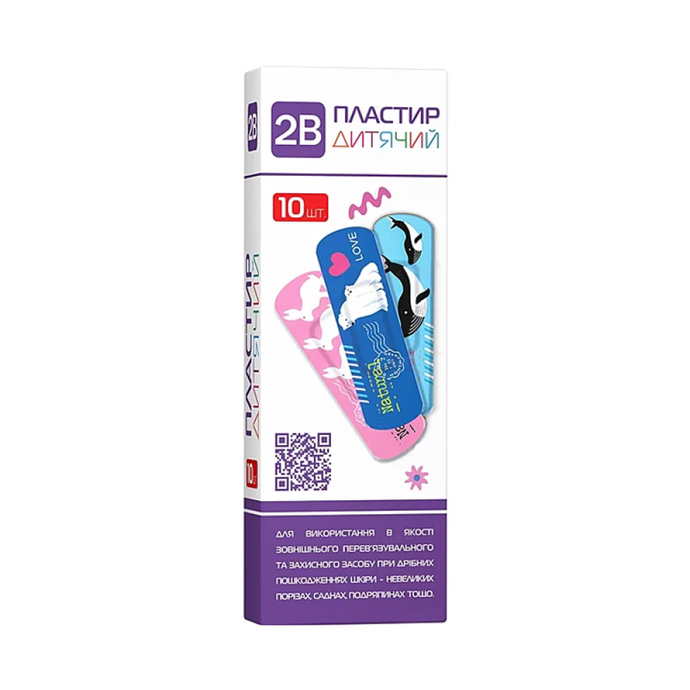 Водостійкі пластирні смужки для дітей 2В виготовлені з поліетилену та прикрашені яскравими дитячими зображеннями. Завдяки цьому діти легше сприймають процедуру захисту рани. Яскраві малюнки відволікають їхню увагу, а спеціальний розмір 19*56 мм дозволяє пластирям оптимально прилягати до шкіри, забезпечуючи надійний захист.