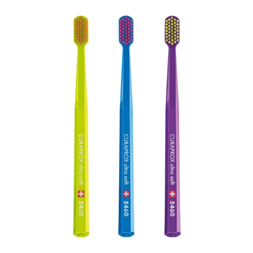 Набір зубних щіток CURAPROX CS 5460/3-03 Ultra Soft Жовта - Синя -Фіолетова , d 0,10 мм, 3 шт.