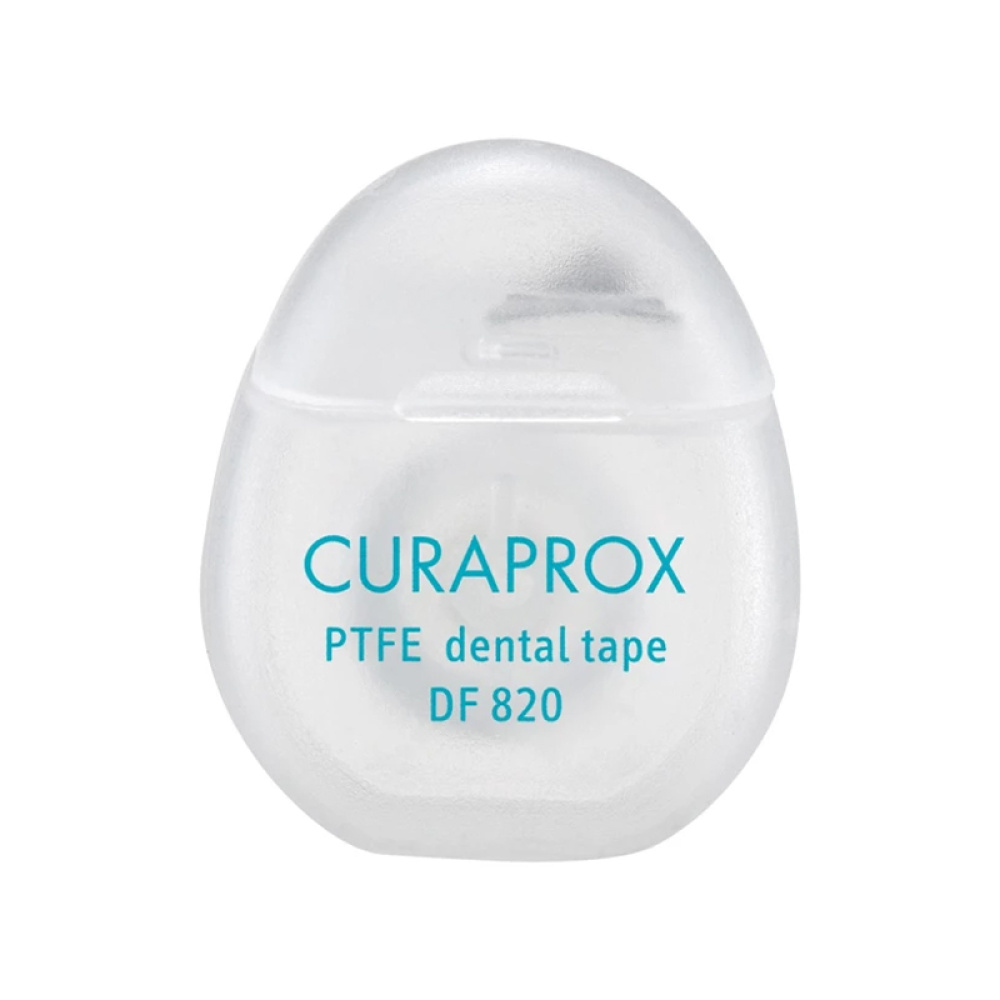Компактна тефлонова стрічка Curaprox DF 820m з хлоргексидином у форматі 5 м — зручний варіант для знайомства з продуктом або використання в дорозі.