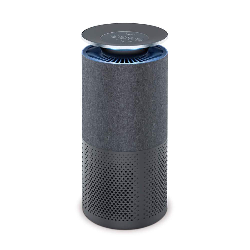 Розумний очищувач повітря в сучасному дизайні з тканинним чохлом. Підходить для великих приміщень, має смарт‑сенсор дрібного пилу та керується через додаток.