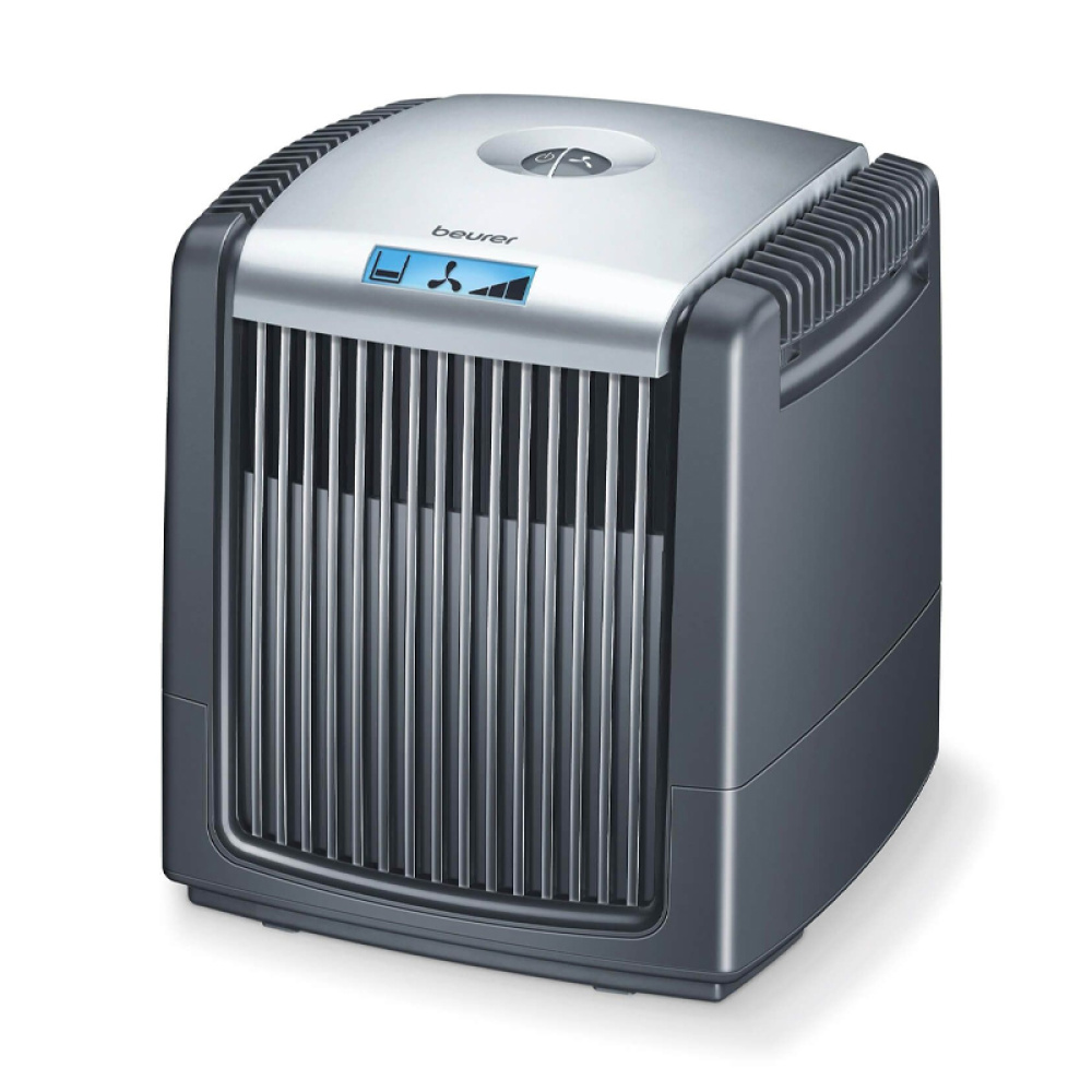 Повітроочищувач‑зволожувач (air washer) у чорному кольорі. Зволожує та очищує повітря за допомогою холодного випаровування без змінних фільтр‑матів — вода виступає природним фільтром.