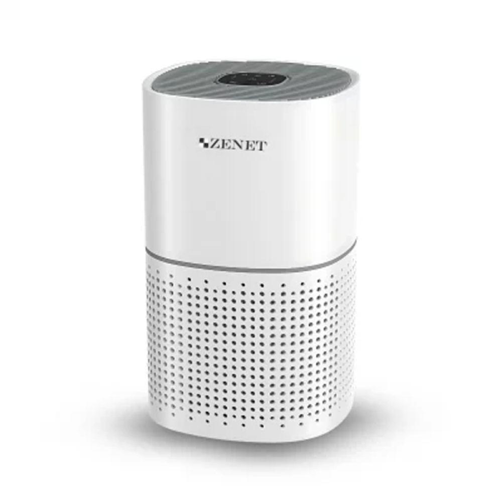 Компактний очищувач повітря для дому/офісу, оптимальний для кімнат до 50 м². Поєднує 3-в-1 фільтрацію (передфільтр, вугільний та HEPA), має сенсорне керування, нічний режим, таймер та блокування від дітей. Підходить для зменшення пилу, пилку, диму та інших алергенів у повітрі.