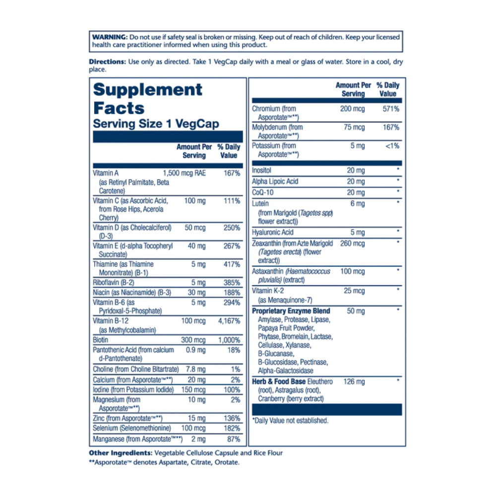 Цей дієтичний продукт містить комплекс вітамінів і мінералів, спеціально розроблений для людей віком від 50 років. Він містить поживні речовини, які необхідні для підтримки здоров'я серця, кісток, імунної системи та загального самопочуття.