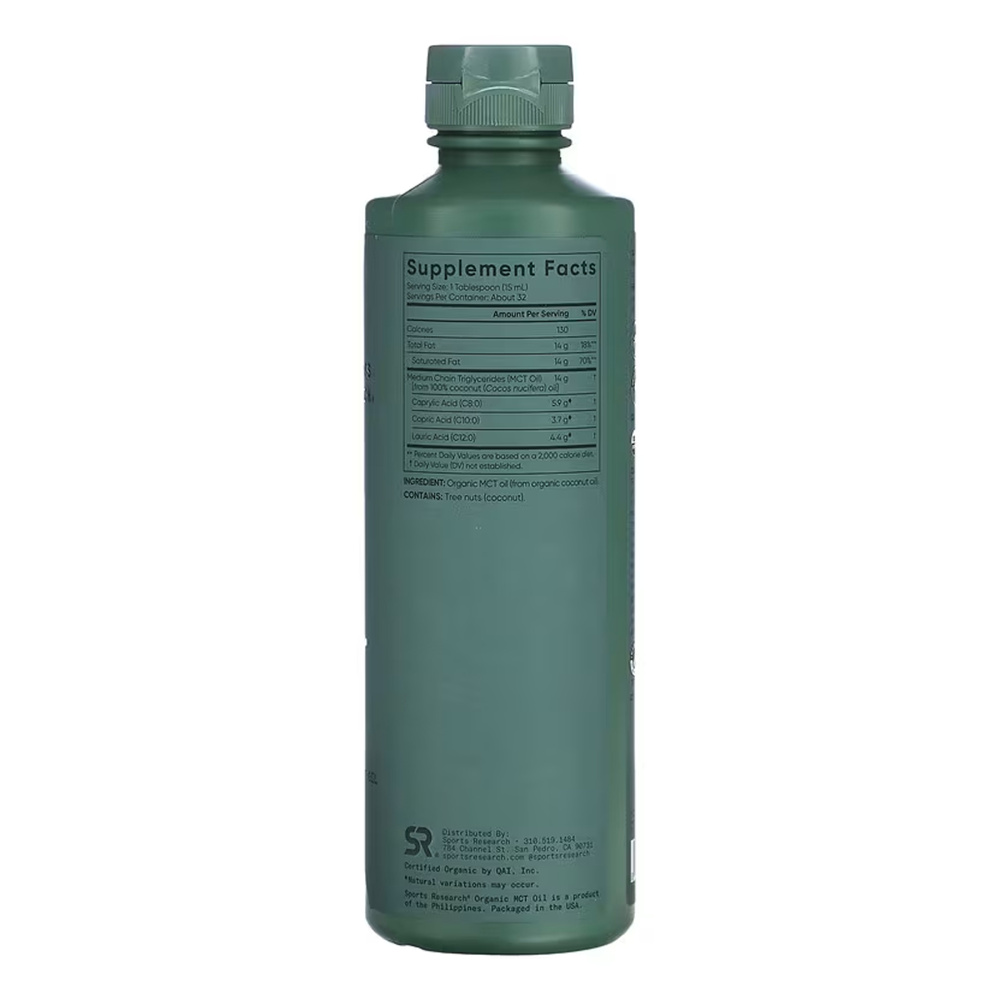 Потрібна корисна альтернатива традиційним оліям чи жирам? Тоді зверніть увагу на органічну олію MCT від Sports Research®! Чудова альтернатива оліям з насіння або вершковому маслу, отримана виключно з кокосових горіхів без використання хімічних речовин чи гексану, що забезпечує продукт, який швидко та легко засвоюється без будь-якого смаку. Дослідження показують, що тригліцериди середнього ланцюга (MCT) можуть допомогти живити мозок і тіло, особливо для тих, хто дотримується кетогенного способу життя з низьким вмістом вуглеводів. Наша олія MCT містить повний спектр енергетично щільних MCT, включаючи каприлову кислоту (C8) та капринову кислоту (C10), для забезпечення всебічної підтримки, особливо для тих, хто перебуває у стані кетозу.