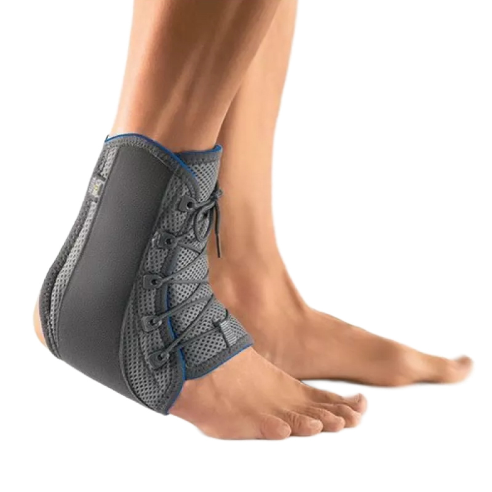 Ортез жорстко обмежує бокову рухливість у гомілковостопному суглобі, зменшуючи больовий синдром. Регульований користувачем компресійний вплив запобігає розвитку набряку в області суглоба. Пластиковий U-подібний елемент посилює фіксацію. Додатковий ремінець обмежує пролапс таранної кістки.