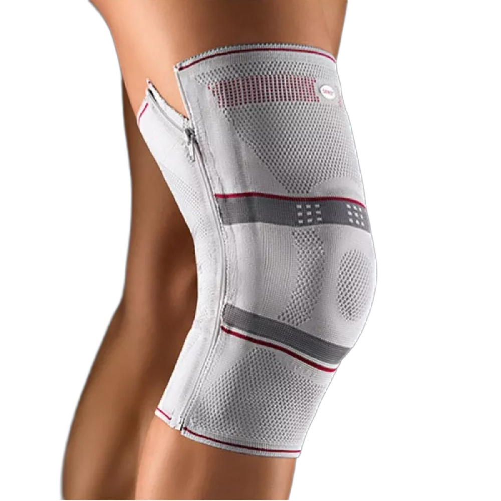 Ортез на колінний суглоб BORT select GenuZip надає компресійний ефект, м’яко підтримує колінний суглоб і надколінок. Застібка-блискавка робить надягання дуже зручним. Різні зони наколінника мають різну розтяжність, тому він сідає на ногу бездоганно. Спіральні ребра жорсткості підтримують, але не заважають рухатися. М’яке та приємне полотно основи SOFTflex Plus з включенням охолоджувальних волокон BREEZE робить ортез надзвичайно комфортним.