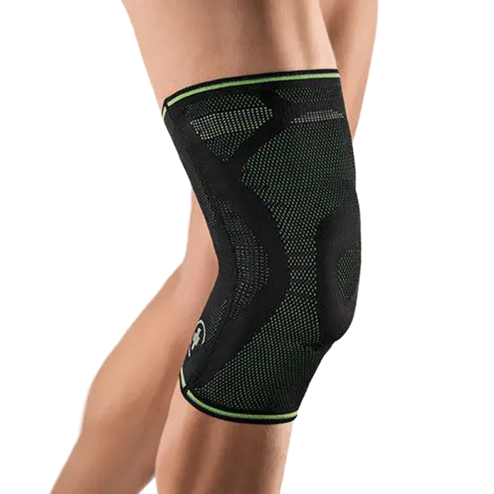 Компресійний наколінник BORT StabiloGen Sport — найкращий захист коліна під час активних рухів. Еластична трикотажна основа об’ємного плетіння SOFTflex 3D з м’якою оксамитовою внутрішньою поверхнею дуже комфортна та приємна для шкіри. Спіральне ребро жорсткості з кожного боку надійно стабілізує та підтримує апарат суглоба. Спеціальна зона комфорту у підколінній ямці практично не утворює складок при згинанні ноги й не заважає присідати. Вплетені силіконові волокна у зоні стегна надійно фіксують наколінник на місці й не дозволяють йому сповзати. Передбачене функціональне кільце анатомічної форми для безпечного ведення надколінка в інтенсивних рухах. Розширена розмірна сітка дозволяє підібрати наколінник людям із нестандартними формами: накачаними або пишними стегнами.