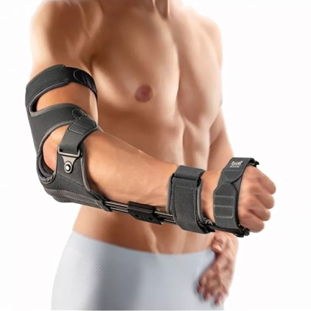 Ортез фіксує ліктьовий суглоб у заданому положенні, розвантажує апарат суглоба. Виключає небажану рухливість, завдяки чому зменшується больовий синдром. Завдяки рельєфу внутрішнього покриття надає легкий мікромасажний ефект і посилює живлення тканин кінцівки. Скорочує період відновлення після травм або захворювань суглоба.