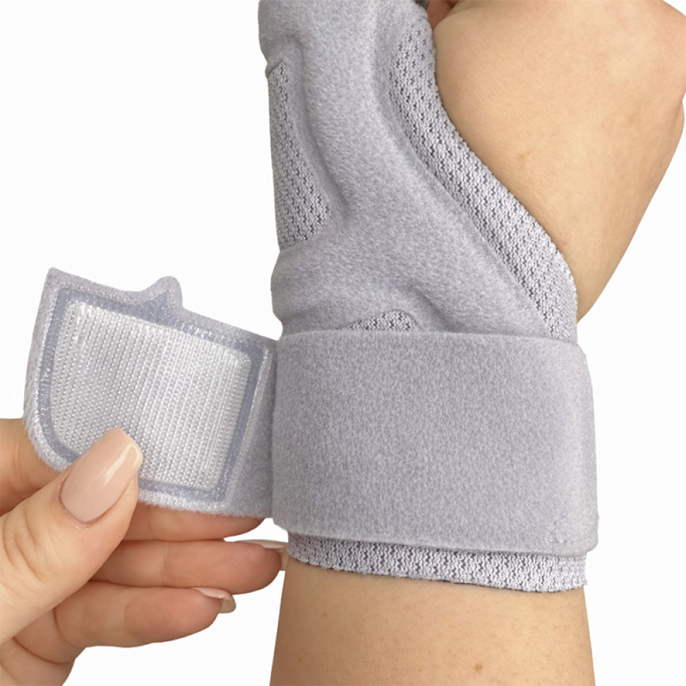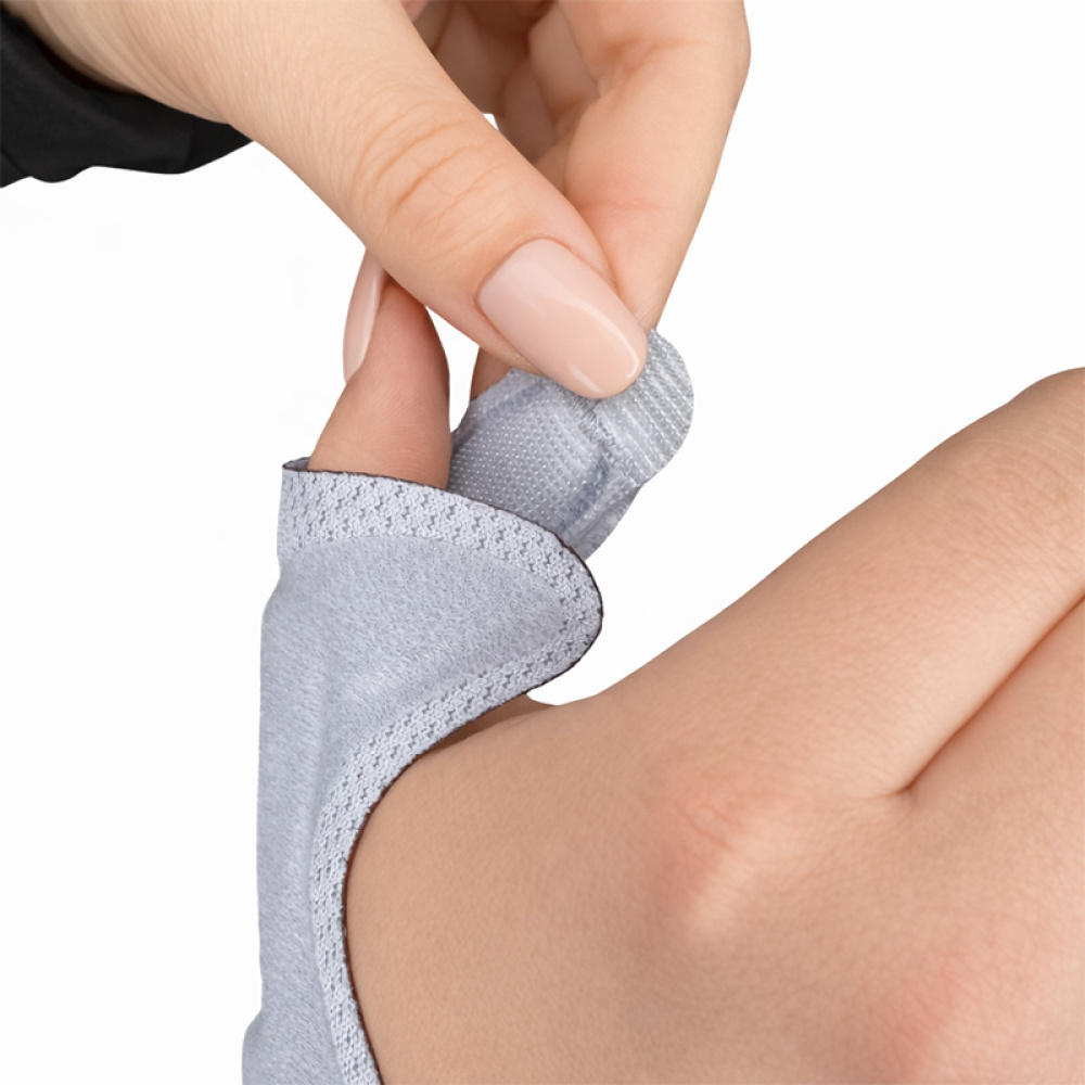 Текстильний бандаж для п'ястно-фалангового і п'ястно-п'ясткового суглоба. З алюмінієвою вставкою, що формується, і принципом закриття з фіксатором.