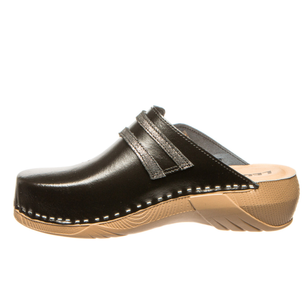 Анатомічна устілка - складається з масажної меморі-піни і натуральної шкіри, вона відмінно підтримує правильне положення стопи усередині сабо, тим самим створюючи профілактику різних хвороб ніг.