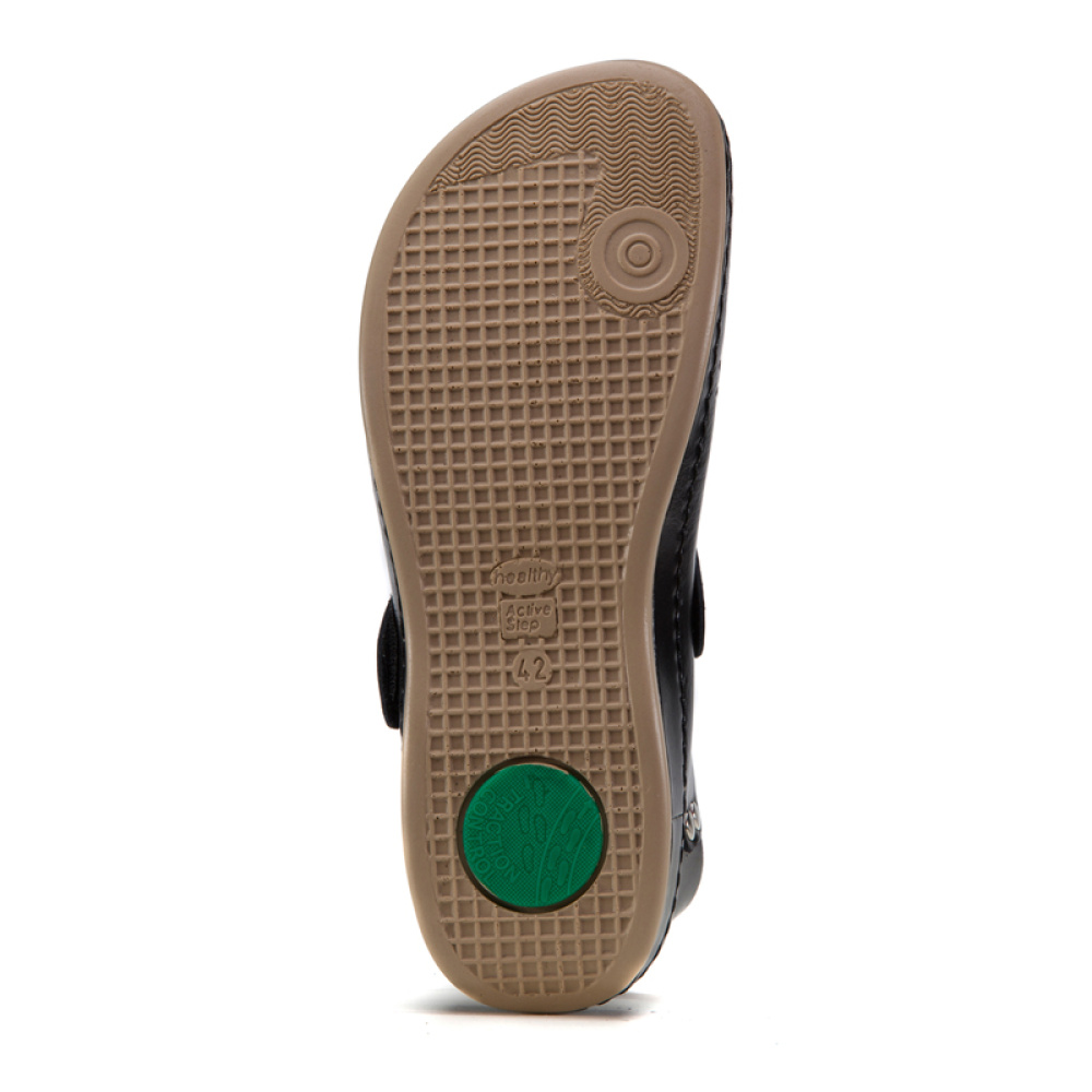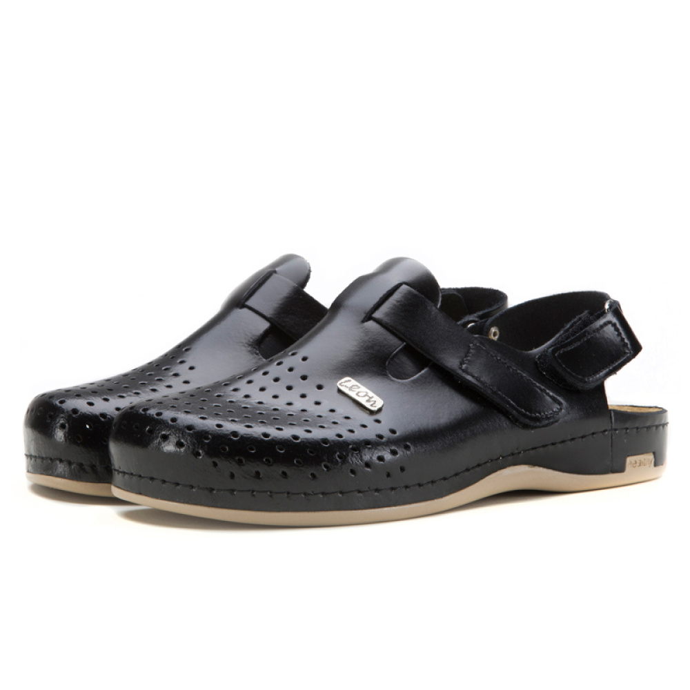 Масажна гелева устілка, яка використовується при виготовленні моделі LEON сабо, коректує положення стопи, покращує кровообіг в ногах, знижує набряклість і ліквідує втому. Модель має шкіряний ремінець на застібці, що дозволяє регулювати взуття по ширині стопи.