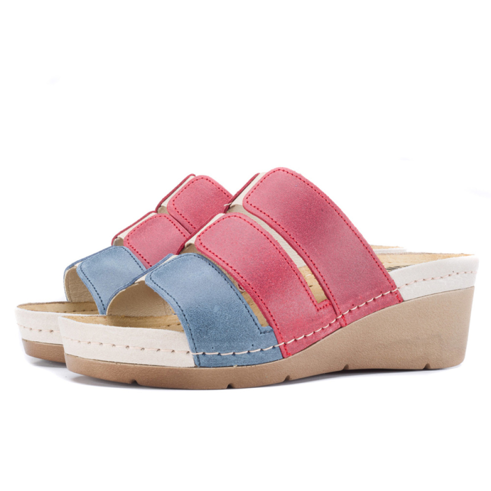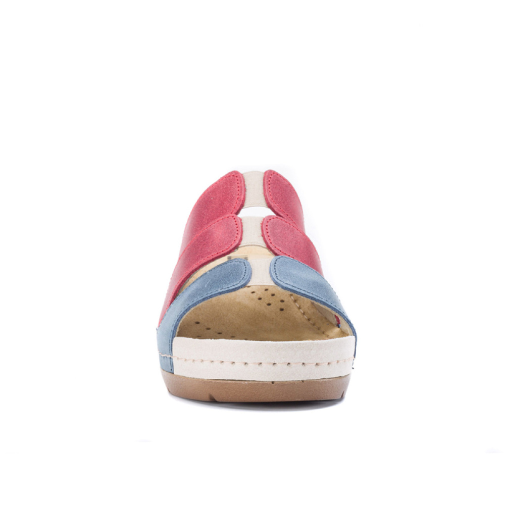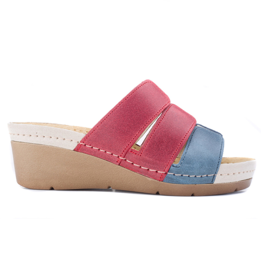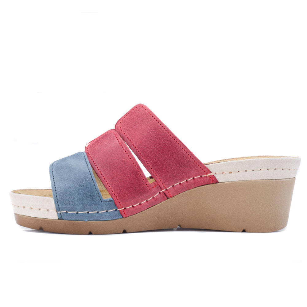 Яскрава і колоритна триколор жіноча модель-сабо 1009 стильно і витончено виглядає як в "casual", так і в класично-елегантному стилі. Завдяки вдало підібраній гаммі кольорів можна освіжити ваш повсякденний стиль. Триколорна гумка, з натуральної шкіри (Орландо), правильно фіксує ногу і не дає їй ковзати при носінні.