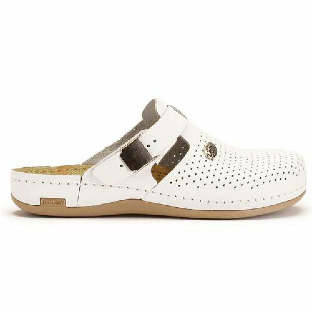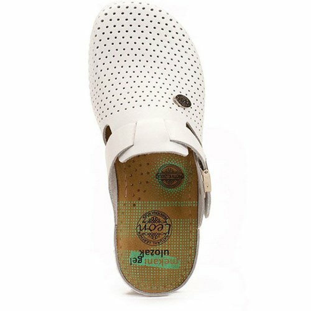 ЛЕОН сабо 950 мають хорошу перфорацію, що запобігає надмірному потовиділенню. Елегантний ремінець, що застібається збоку, додатково фіксує взуття на нозі, дозволяючи здійснювати коригування ширини моделі. Сабо мають широкий носок, що виключає деформацію пальців ніг і неприємний тиск на суглоби.