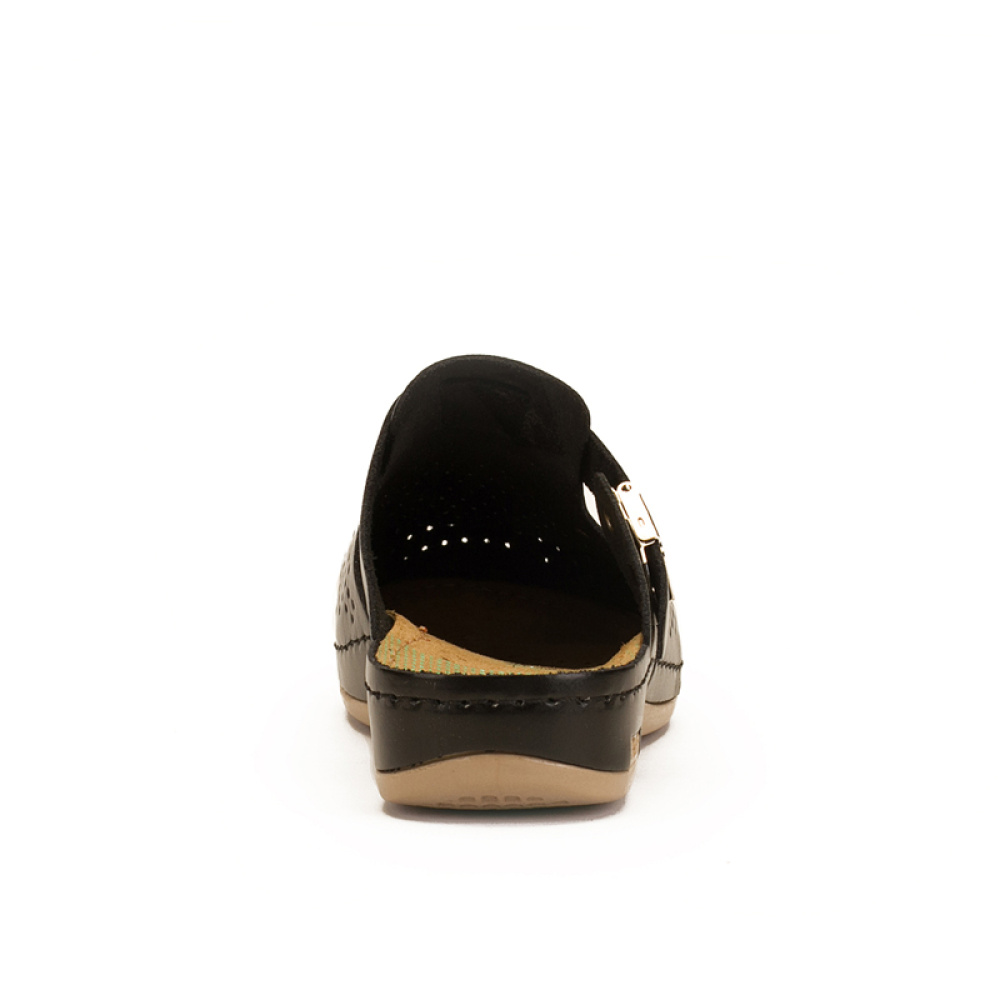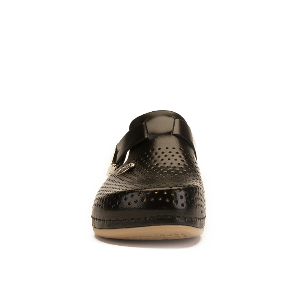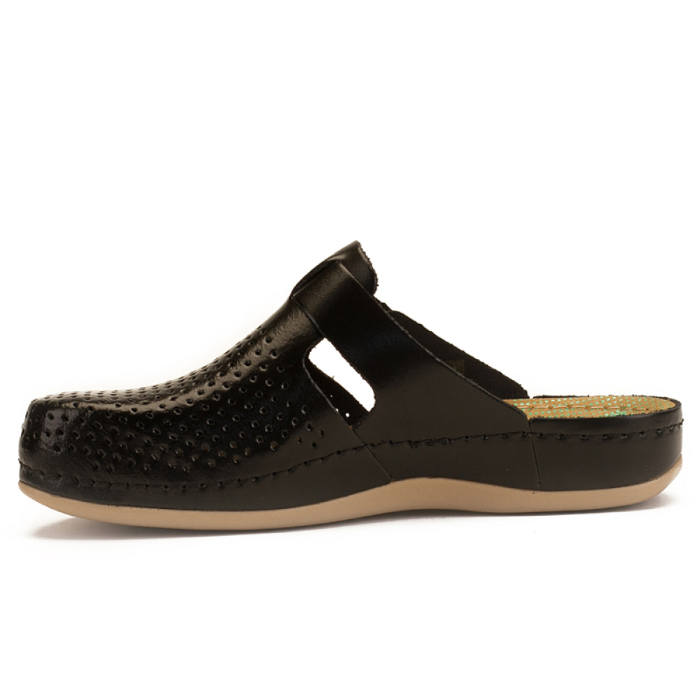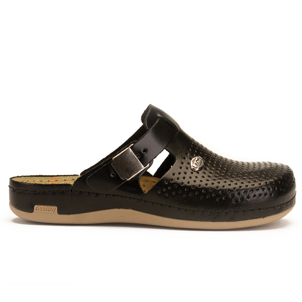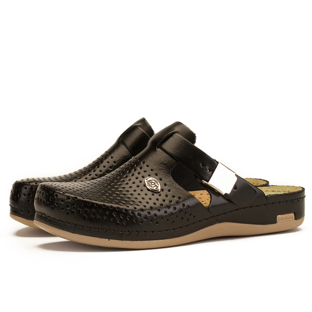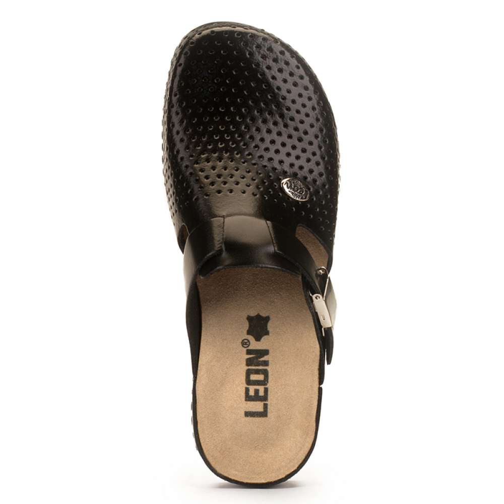ЛЕОН сабо 950 мають хорошу перфорацію, що запобігає надмірному потовиділенню. Елегантний ремінець, що застібається збоку, додатково фіксує взуття на нозі, дозволяючи здійснювати коригування ширини моделі. Сабо мають широкий носок, що виключає деформацію пальців ніг і неприємний тиск на суглоби.