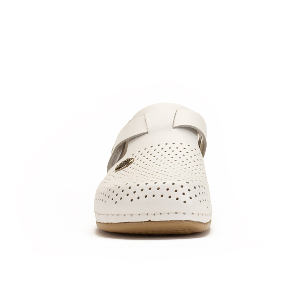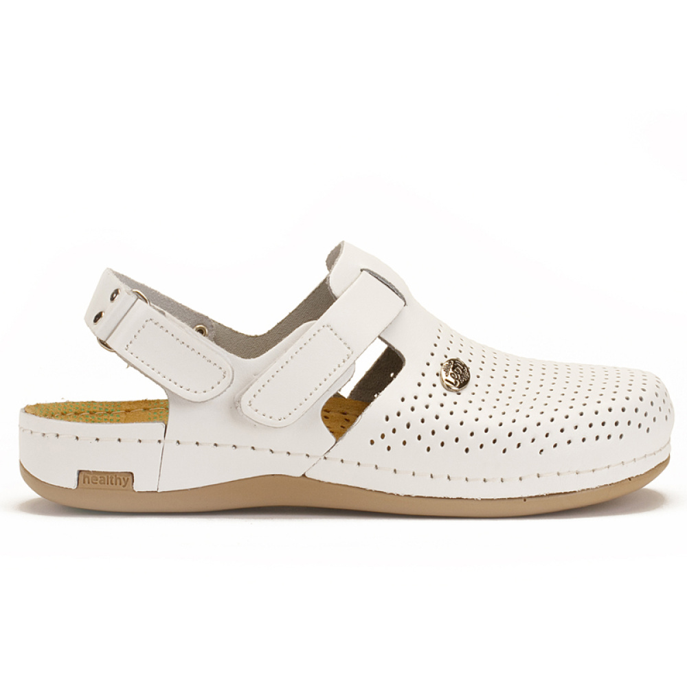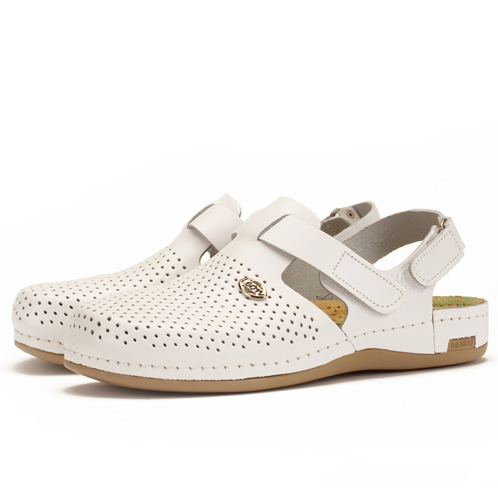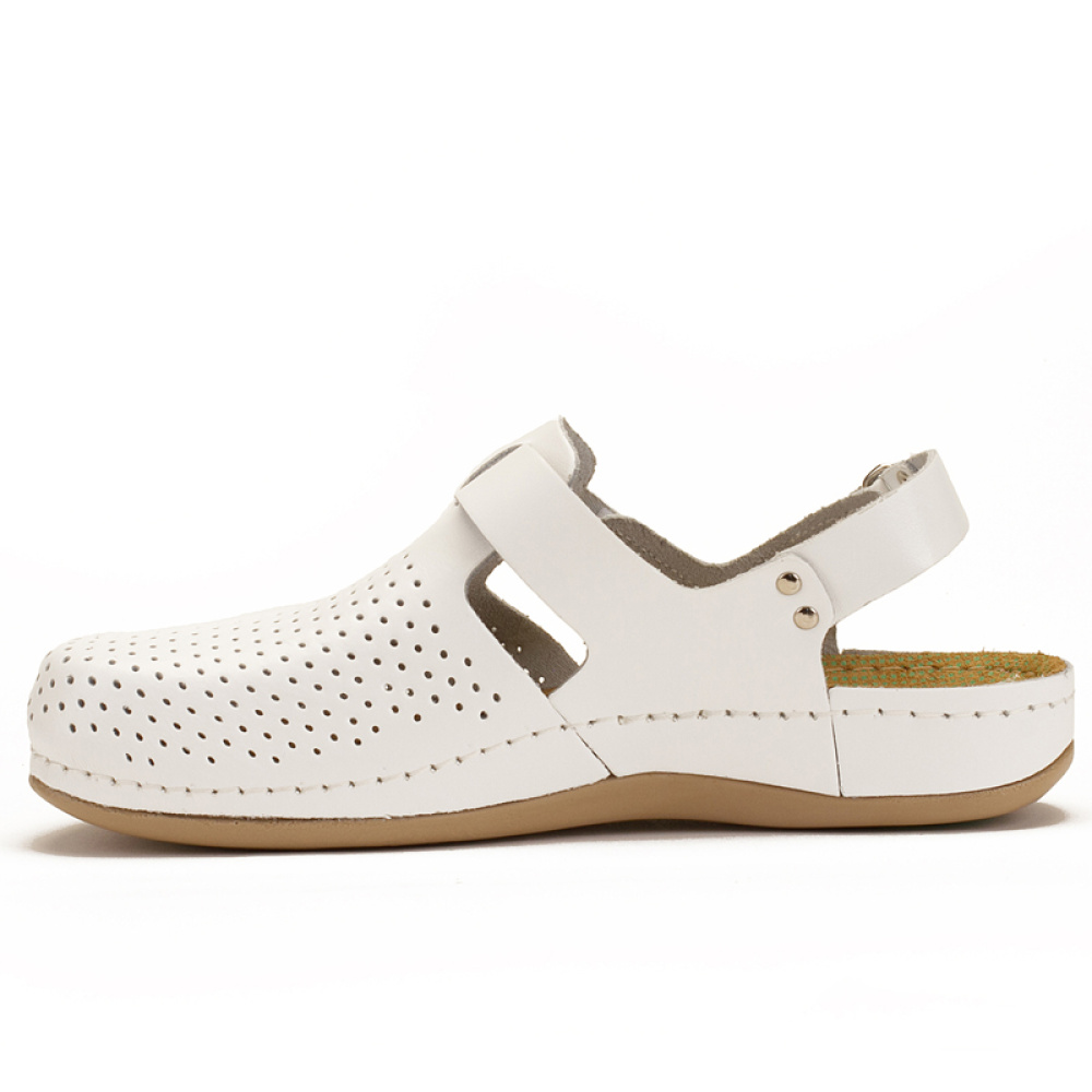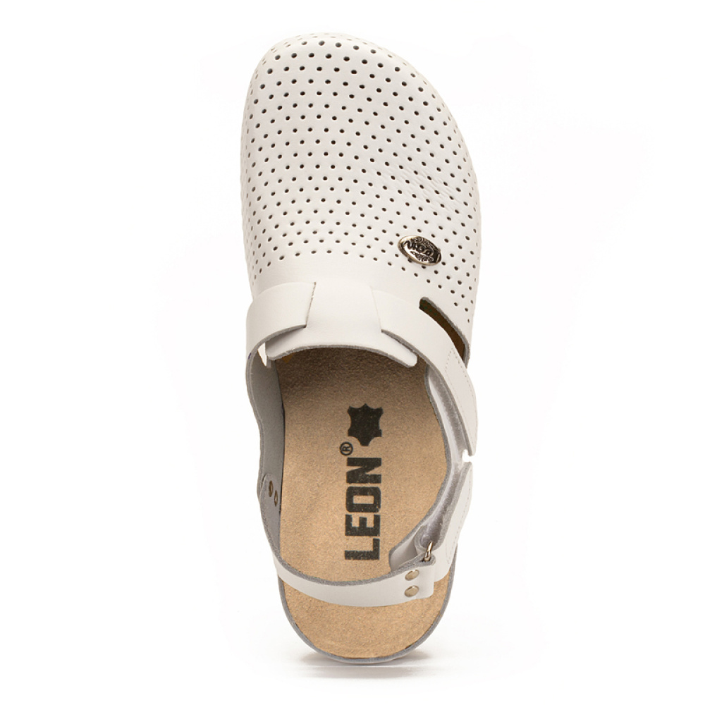 Жіночі тапочки-сабо 951 є стильною і модною моделлю, виконаною з натуральної шкіри. Закритий носок, класичний дизайн роблять модель універсальним взуттям для літніх прогулянок або щоденного носіння на роботі. ЛЕОН сабо 951 мають хорошу перфорацію, що створює комфорт і запобігає надмірному потовиділенню.