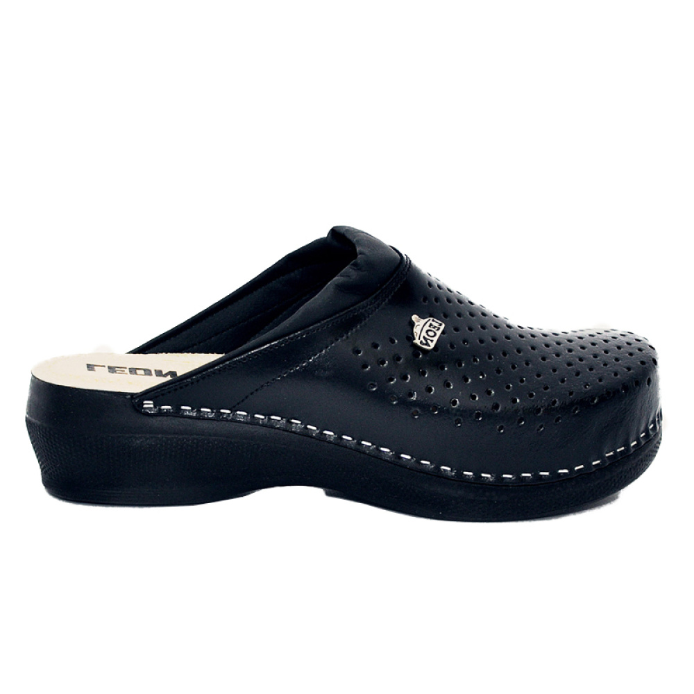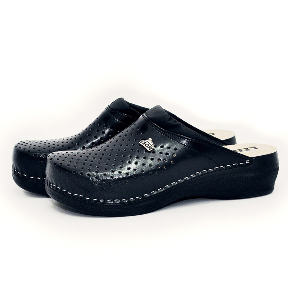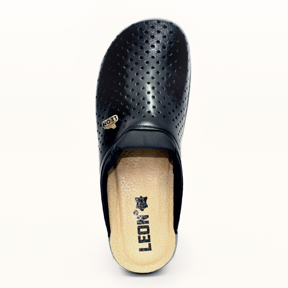 Жіночі сабо PU100 (чорні) - це легке і зручне взуття на кожен день від сербського бренду «Леон», який профілюється на створенні абсолютно комфортного взуття. Сабо PU100, крім функціональної структури, може похвалитися ще й доступною ціною! Верх і підкладка виготовлені з натуральної шкіри, яка в поєднанні з перфорацією створює правильний мікроклімат усередині взуття. Легка поліуретанова підошва з антистатичним ефектом і невеликим каблуком виглядає елегантно і при цьому відіграє велику роль в профілактиці втоми ніг - дія її конструкції направлена на рівномірний розподіл тиску по всій стопі, що значно полегшує роботу і хребту, і суглобам.