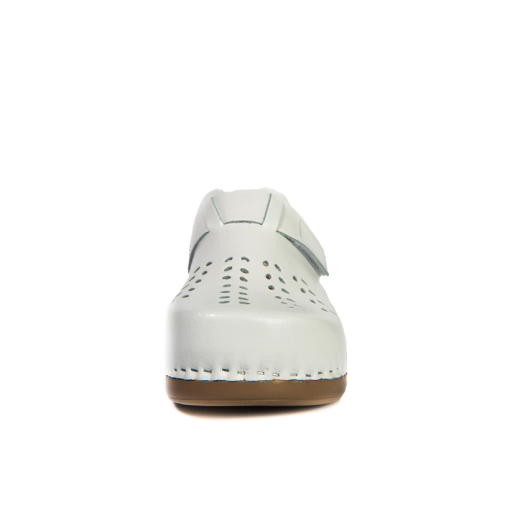 Особливість виробу - ремінець на липучці. Його призначення - регулювання по ширині стопи, забезпечення фіксованого положення ноги. Підошва прошита надійно, виконана з меморі-піни. Забезпечує функцію антиковзання. Верхня частина сабо відрізняється наявністю спеціальних отворів. Дихаюче покриття, відкрита п'ята, анатомічний клас взуття - незаперечні переваги моделі.