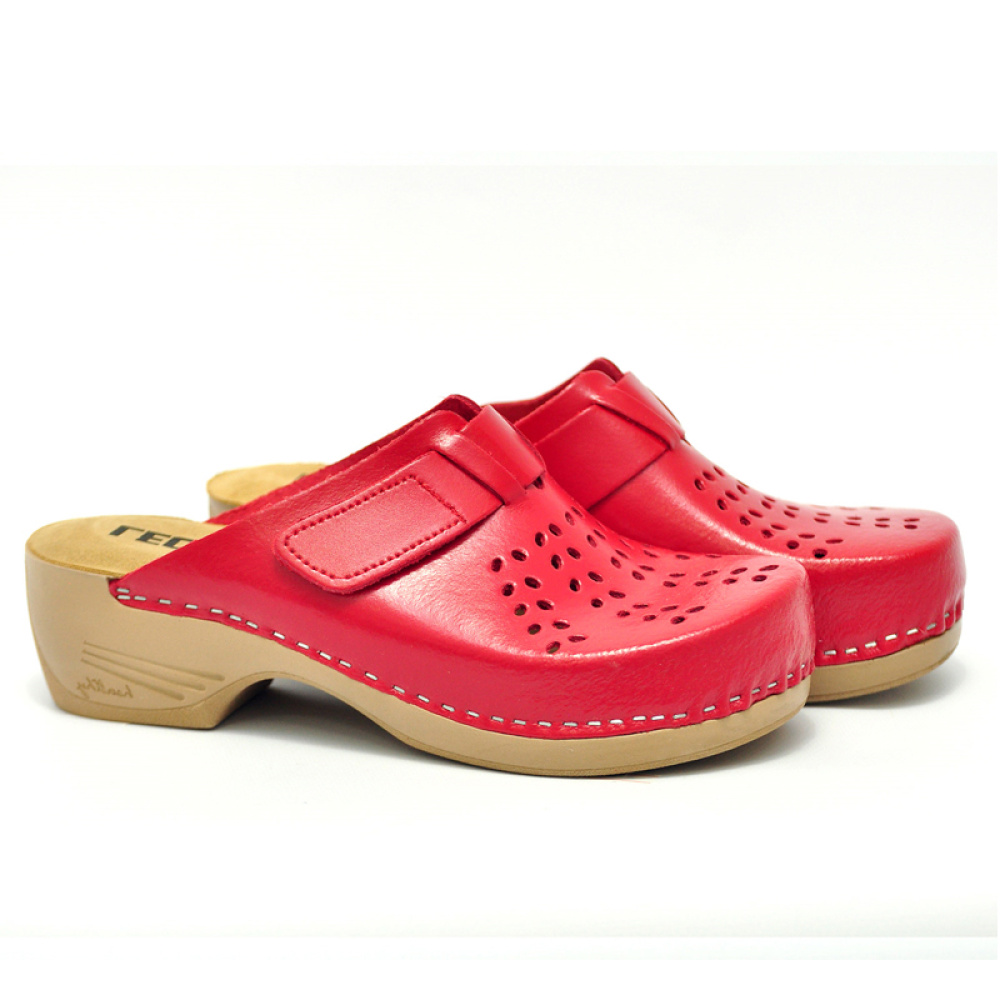 Особливість виробу - ремінець на липучці. Його призначення - регулювання по ширині стопи, забезпечення фіксованого положення ноги. Підошва прошита надійно, виконана з меморі-піни. Забезпечує функцію антиковзання. Верхня частина сабо відрізняється наявністю спеціальних отворів. Дихаюче покриття, відкрита п'ята, анатомічний клас взуття - незаперечні переваги моделі.