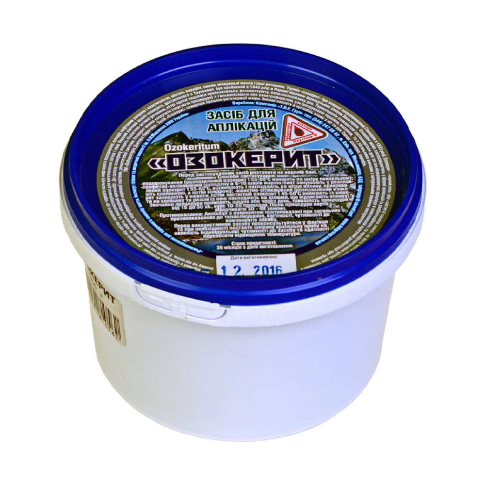 Озокерит – воскоподібна маса від темно-коричневого до чорного кольору – речовина нафтового походження, містить парафін, мінеральні олії, смоли та інші речовини. Позитивно впливає запальні процеси, підвищують імунні показники, нормалізують тонус вегетативної нервової системи, стимулюють кровообіг. Чинить протизапальну, розсмоктуючу, болезаспокійливу, антиспастичну, десенсибілізуючу дію, стимулює процеси регенерації.