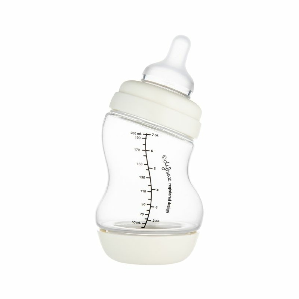 Фізіологічна та м'яка форма соски нагадує материнські груди, що полегшує поєднання грудного вигодовування та годування з пляшечки. Пляшка виготовлена з гіпоалергенного, матового силікону без запаху.
