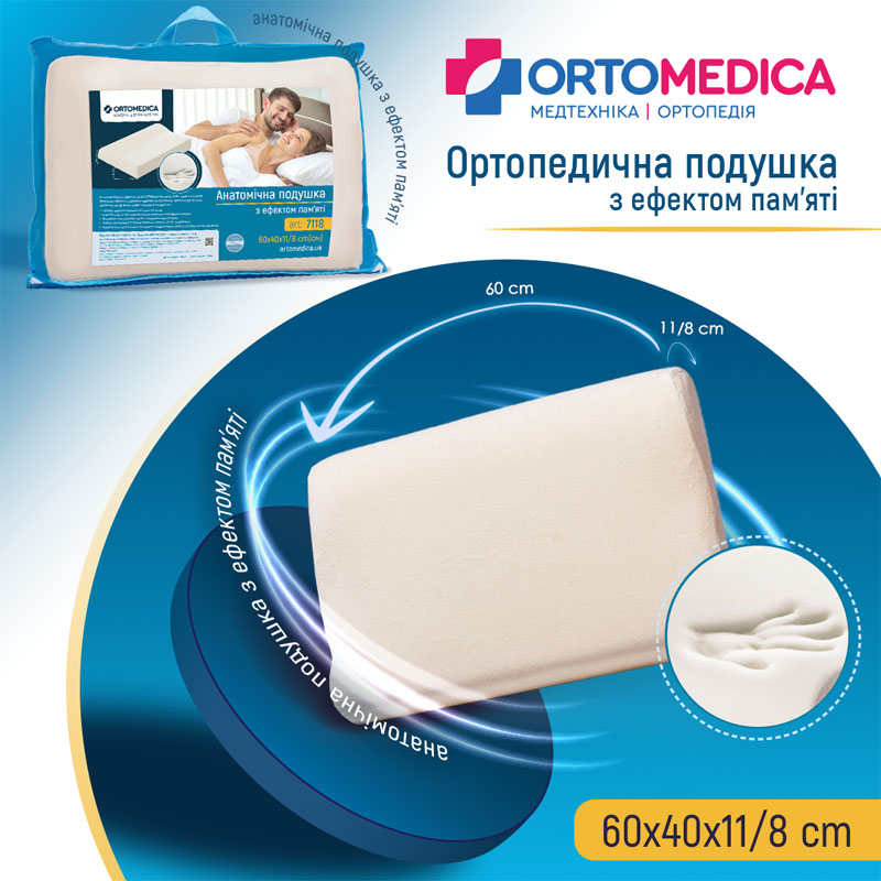 Ортопедична подушка Ortomedica 7118 з віскози набуває форми вашої шиї, коли ви лягаєте, завдяки своїй функції піни.