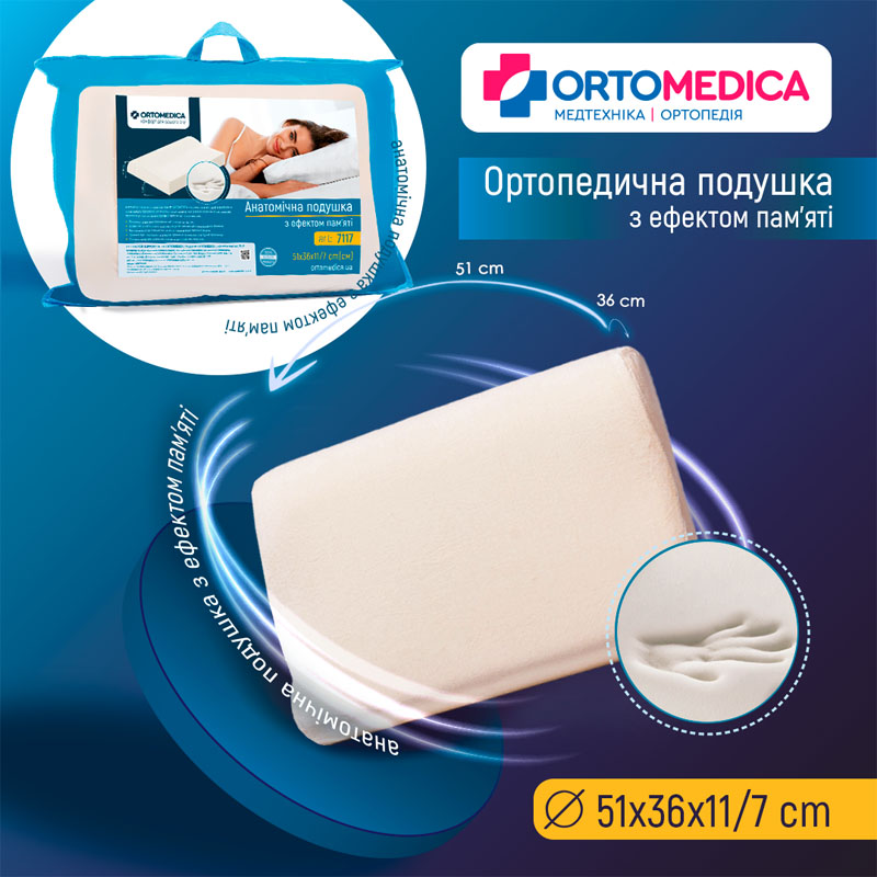 Ортопедична подушка Ortomedica 7117 з віскози набуває форми вашої шиї, коли ви лягаєте, завдяки своїй функції піни.