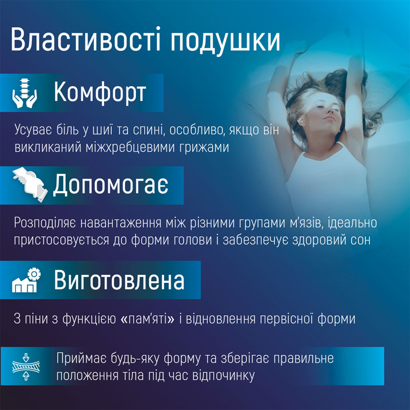 Ортопедична подушка підтримує склепіння шиї.
